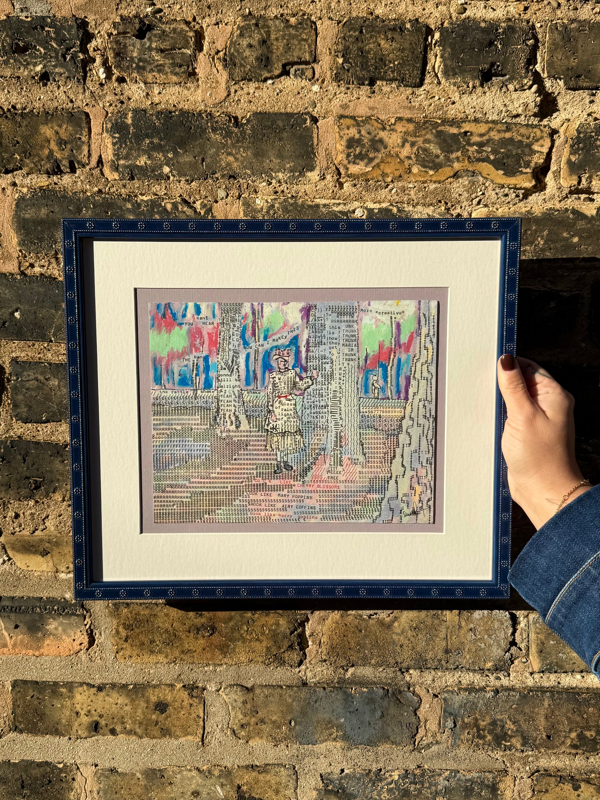 The piece will be custom framed upon order, with process photos posted to X. High-quality frames and mats are selected by the artist to complement the artwork. It's Protected by museum-quality Optimum Acrylic glass (UV-blocking).