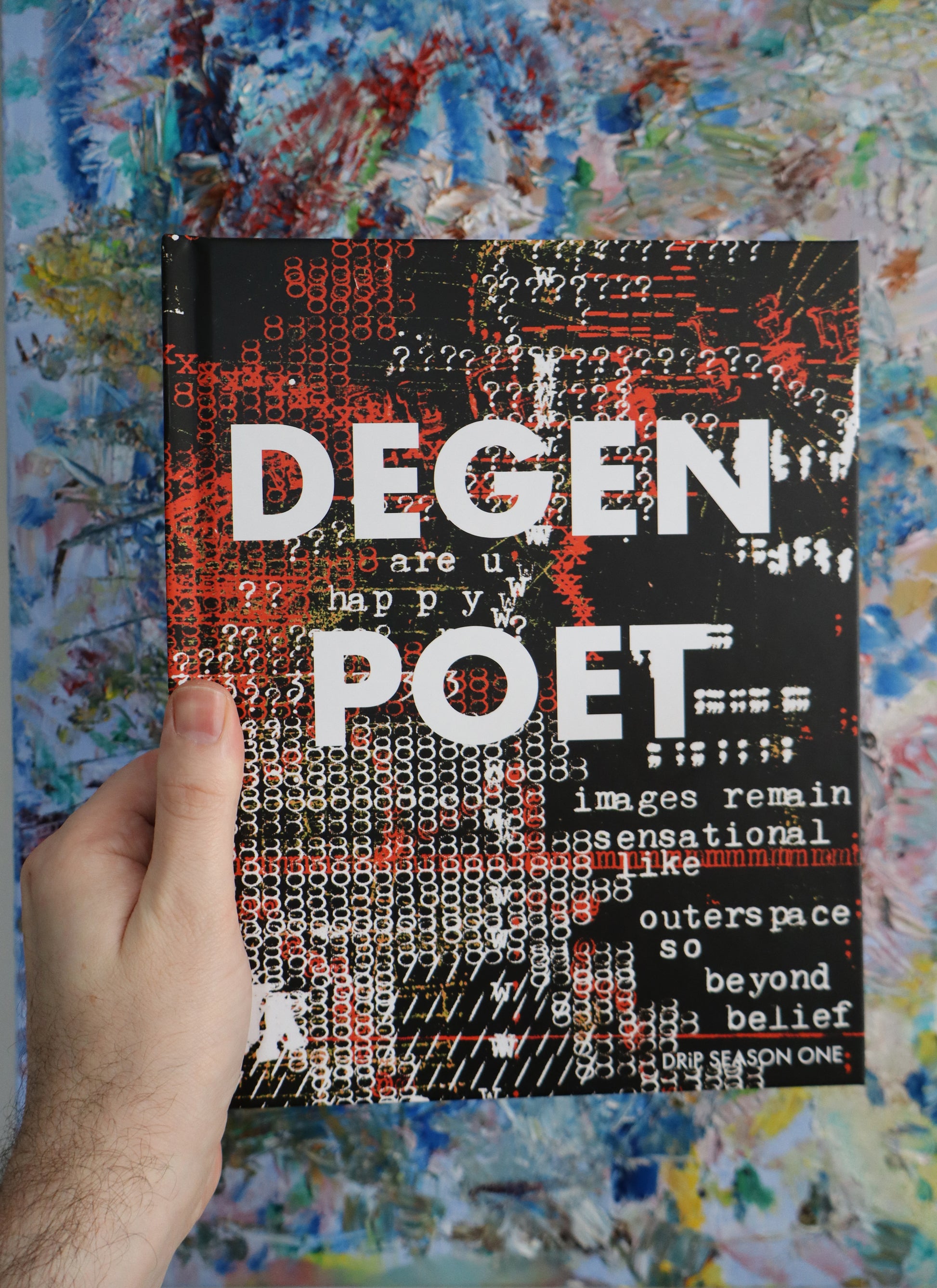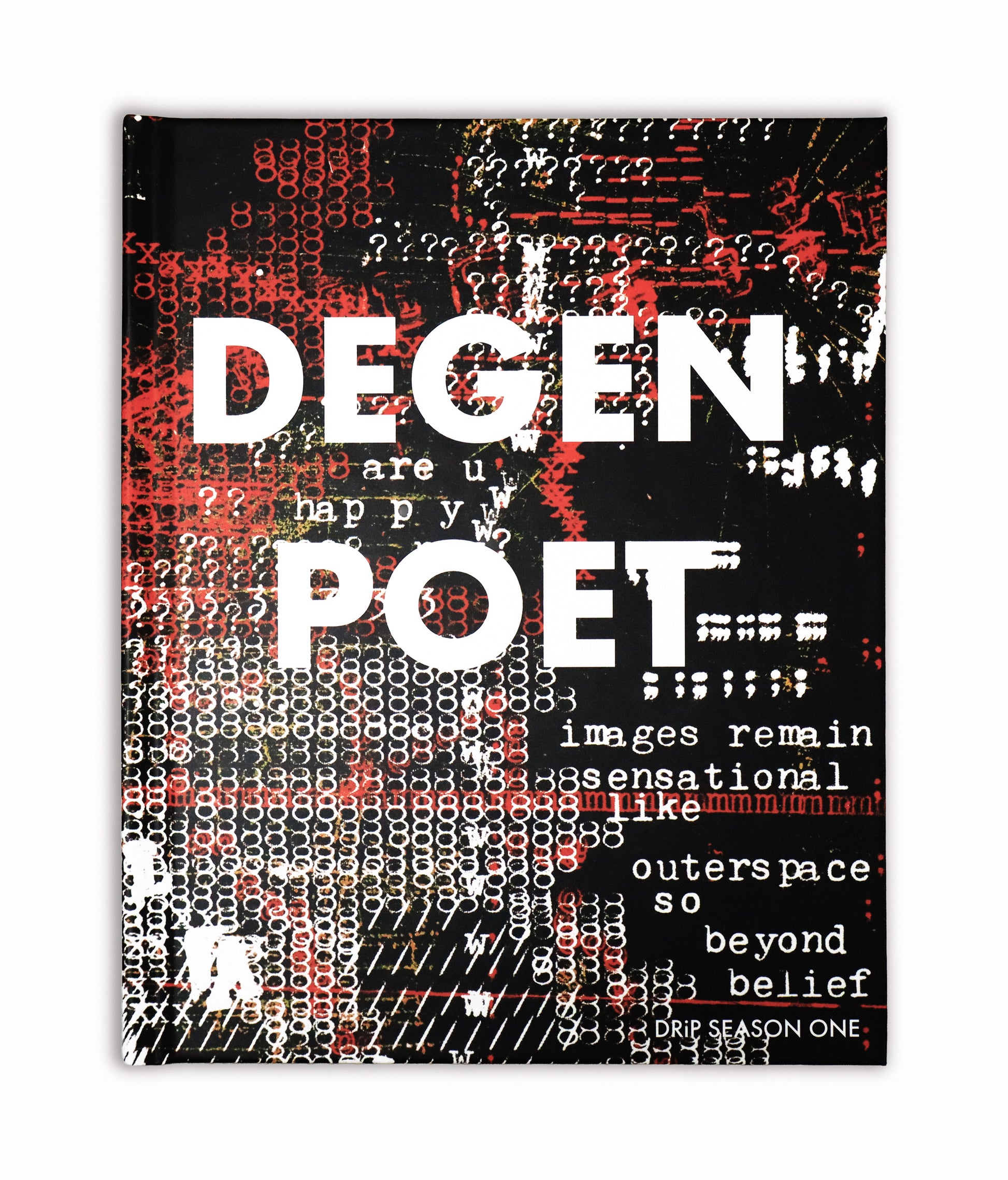 Hardcover book featuring 200+ original typewriter artworks by Degen Poet, every single piece created for DRiP Season One.