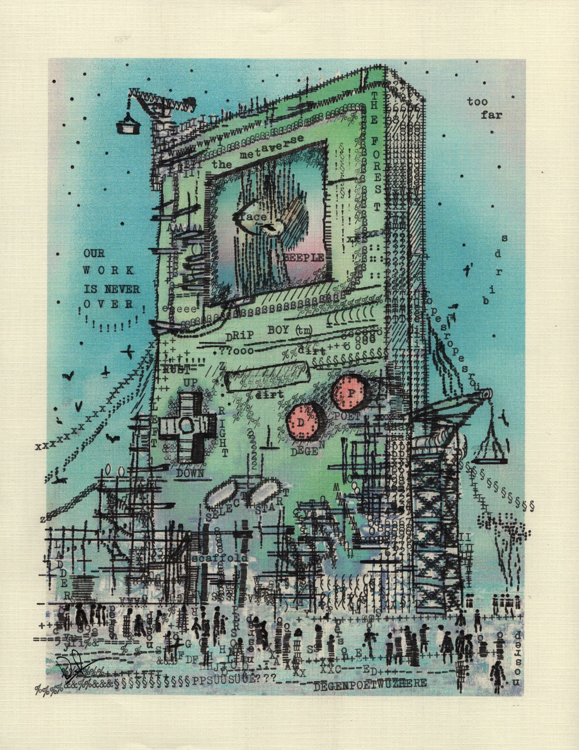 Includes the original typewriter artwork used to create an NFT on Solana. Crafted on a vintage typewriter, it shows platen wear, hammer indentations, and a signature by Degen Poet.