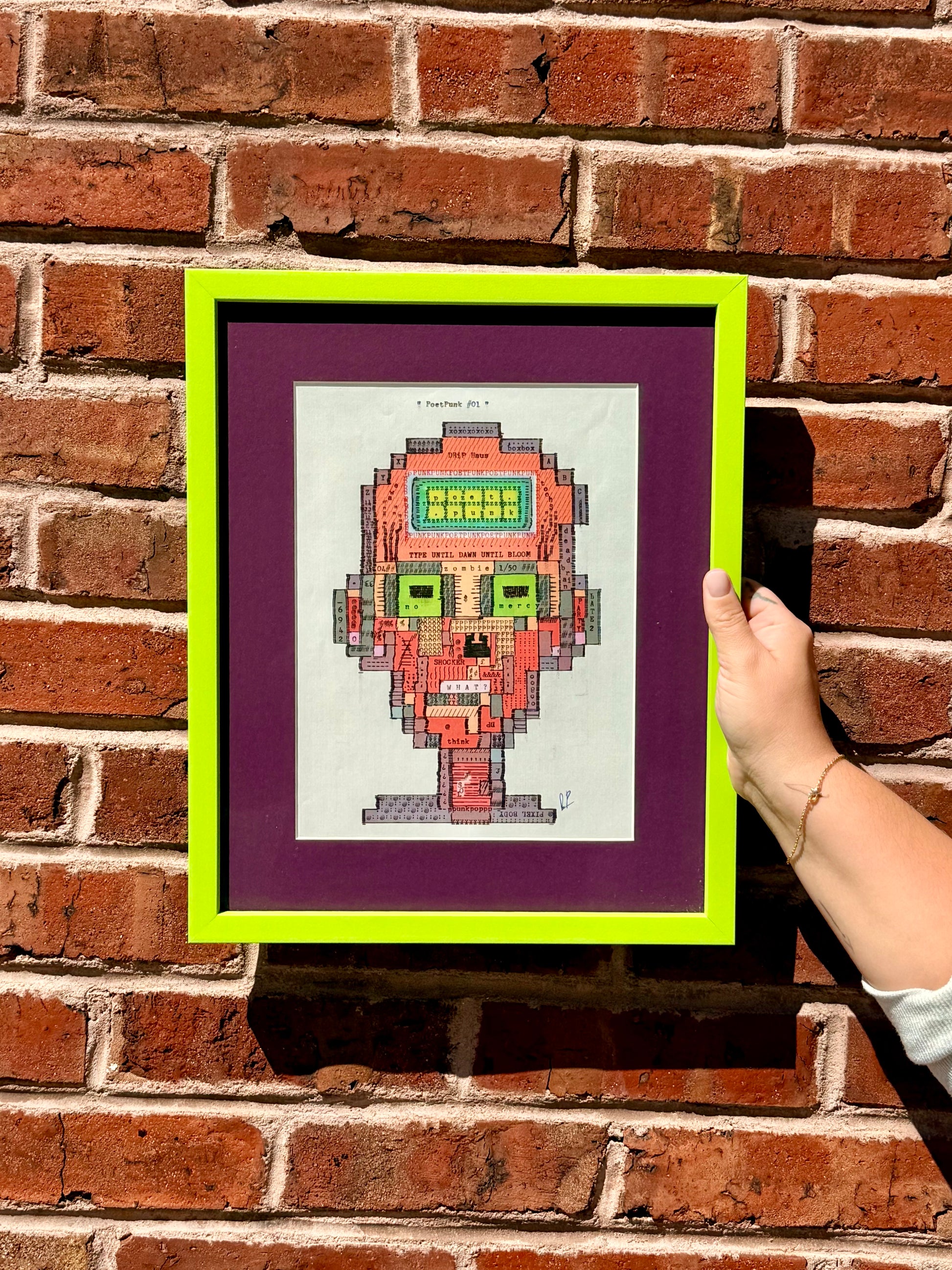 The piece will be custom framed upon order, with process photos posted to X. High-quality frames and mats are selected by the artist to complement the artwork. It's Protected by museum-quality Optimum Acrylic glass (UV-blocking).