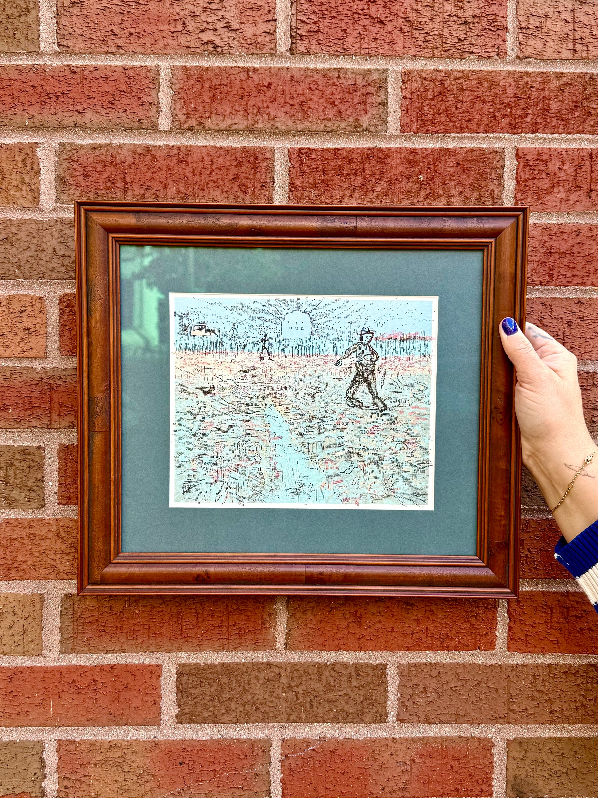 The piece will be custom framed upon order, with process photos posted to X. High-quality frames and mats are selected by the artist to complement the artwork. It's Protected by museum-quality Optimum Acrylic glass (UV-blocking).