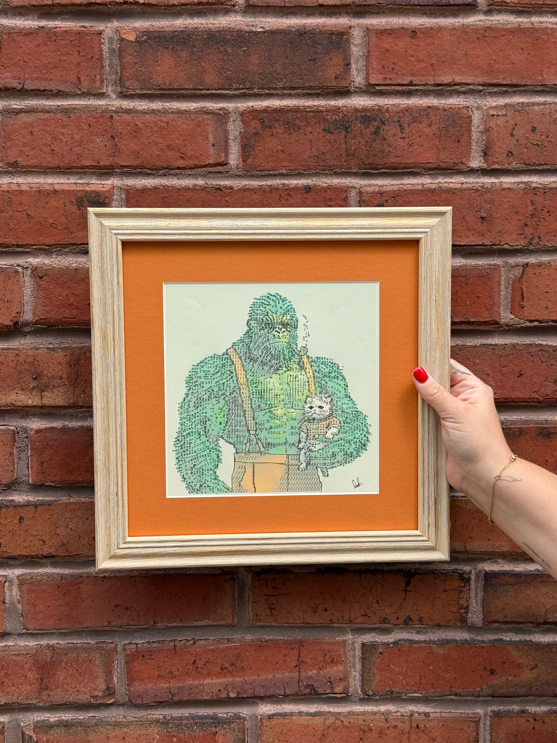The piece will be custom framed upon order, with process photos posted to X. High-quality frames and mats are selected by the artist to complement the artwork. It's Protected by museum-quality Optimum Acrylic glass (UV-blocking).