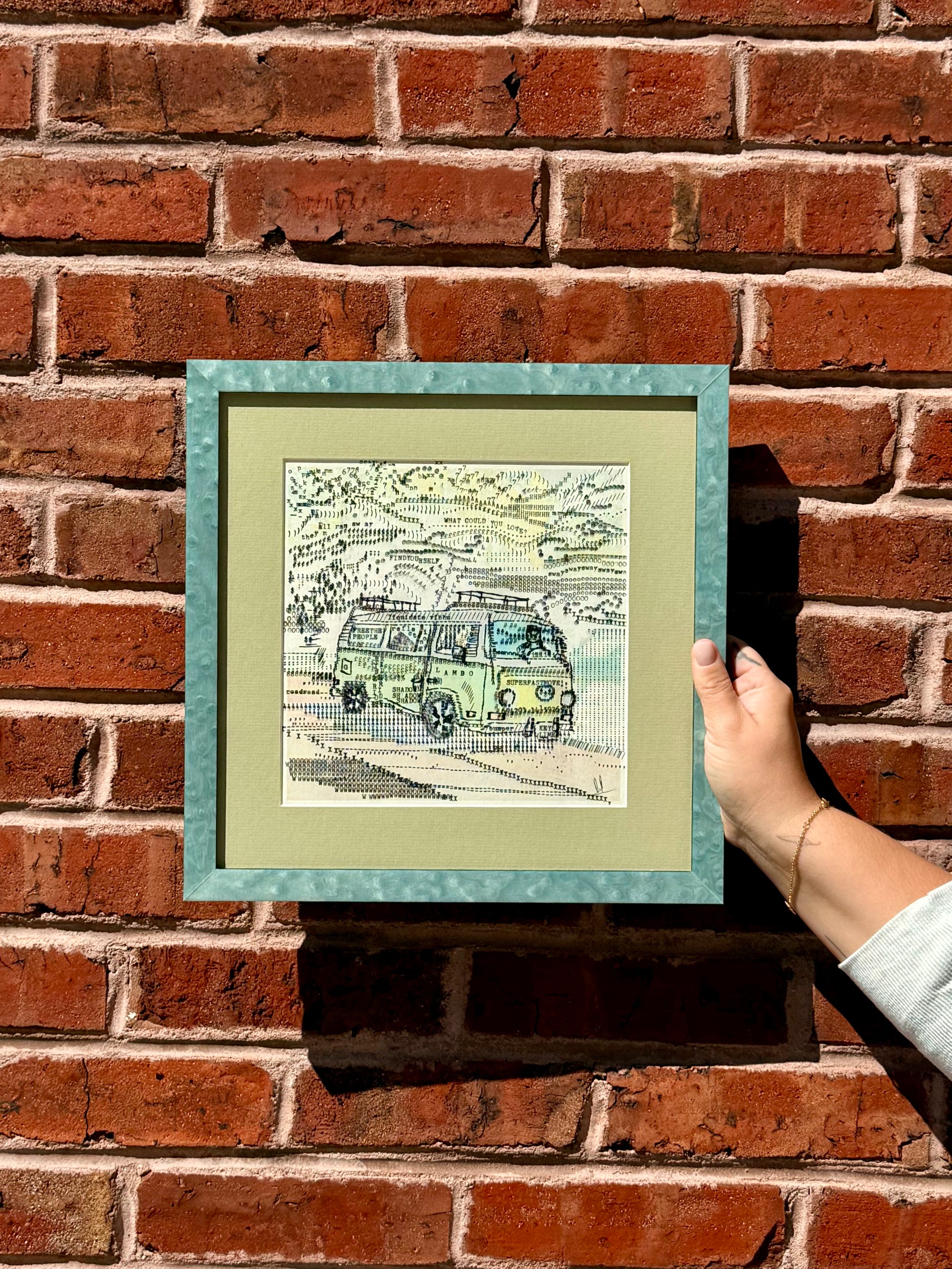 The piece will be custom framed upon order, with process photos posted to X. High-quality frames and mats are selected by the artist to complement the artwork. It's Protected by museum-quality Optimum Acrylic glass (UV-blocking).